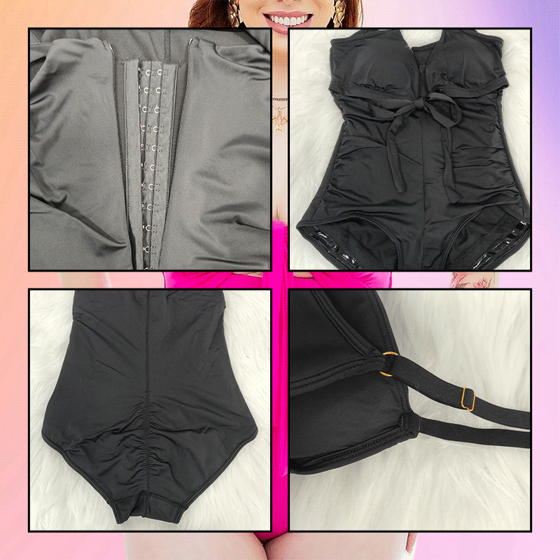 Discreet internal girdle in high quality powernet that helps you control those extra fat, with 3 lines of front clasps, adjustable shoulder straps with back support helping to correct posture.