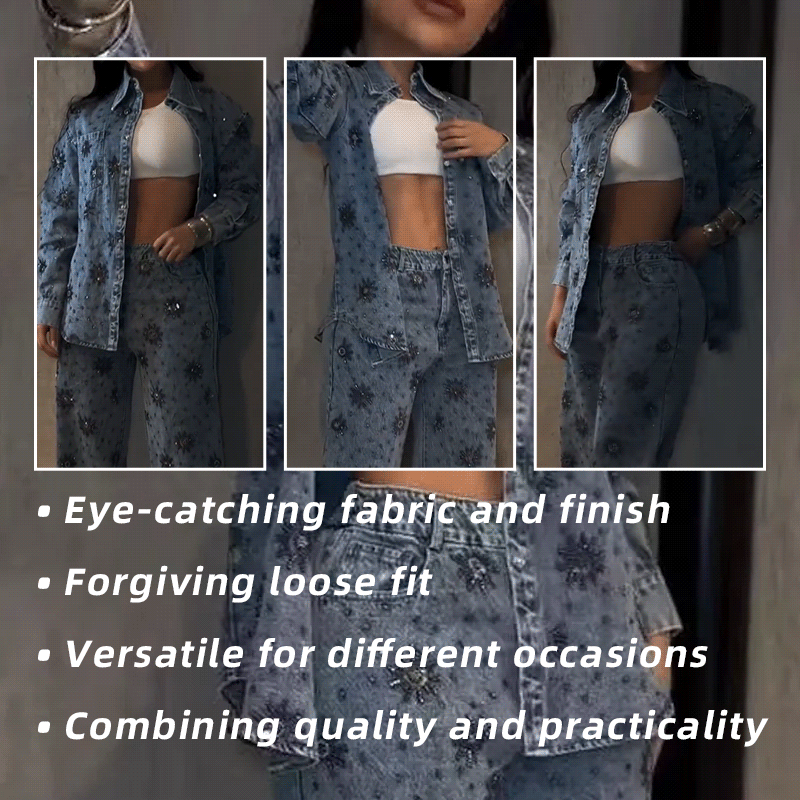 • Combining quality and practicality: The denim fabric is crisp and wrinkle-resistant, the beaded and sequined finish is durable and long-lasting, and the washed and distressed effect gives it a vintage look. It is comfortable to wear and not restrictive, combining aesthetics and practicality.