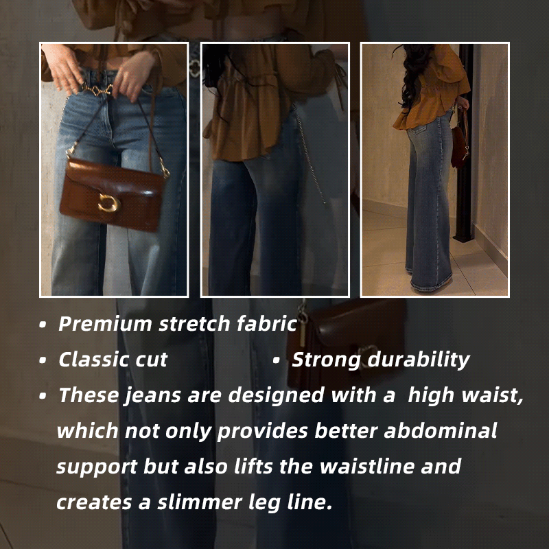 These jeans are designed with a high waist, which not only provides better abdominal support, but also lifts the waistline and creates a slimmer leg line.