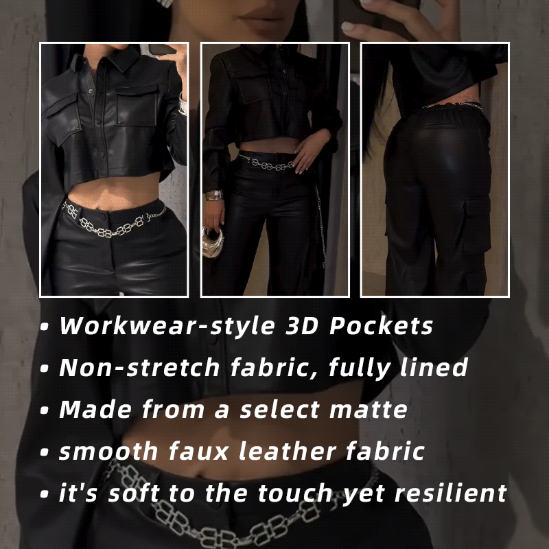This shirt exudes a sophisticated and cool vibe, crafted from soft faux leather that offers the matte finish of leather without feeling stiff or tight.