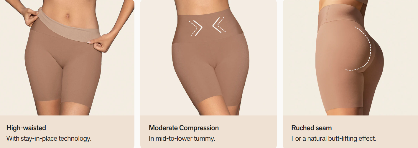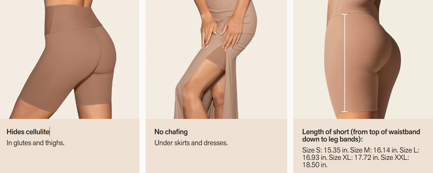 - Slip short: Wear it under dresses and skirts to prevent thigh rub, or under pants for a shaping effect.