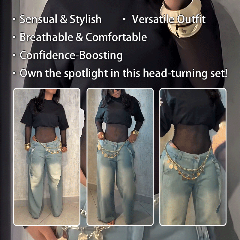 Express your unique style with our Sexy Mesh Bodysuit Short Sleeve T-Shirt 2-Piece Set! This eye-catching ensemble is designed to blend sultry sophistication with effortless comfort, making it perfect for any occasion where you want to stand out.