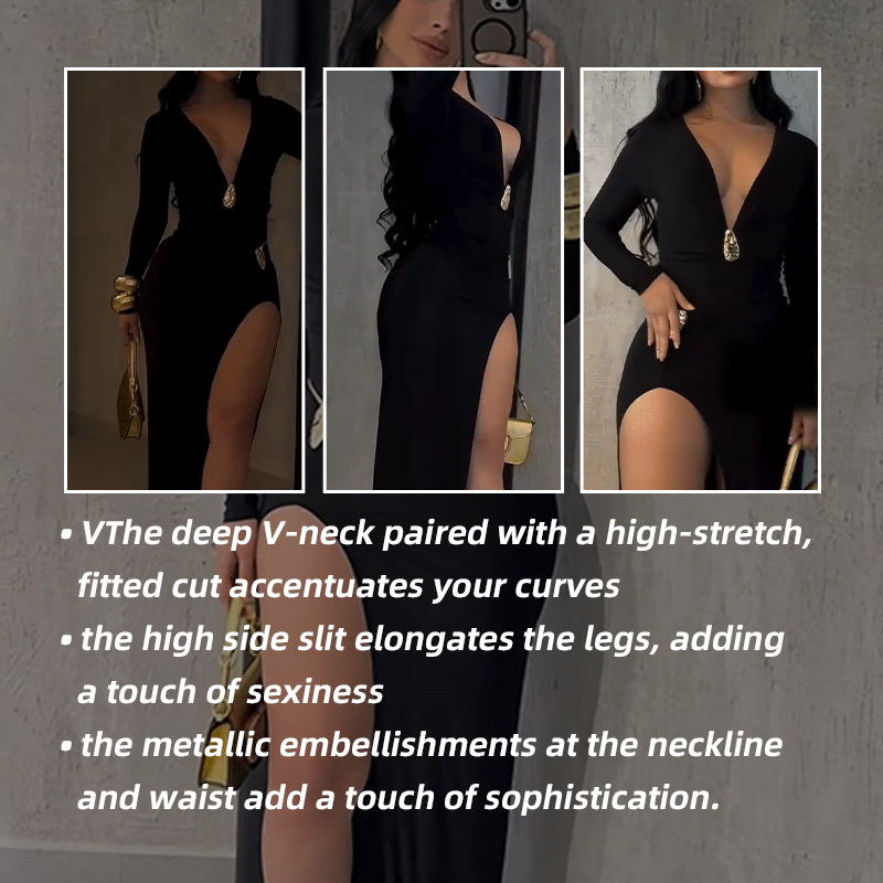 • Sexy and Slimming: The deep V-neck and high-waisted slit design hug the body 360°, highlighting the shoulders and neck, while the slit showcases the leg curves, effortlessly creating a captivating hourglass figure.