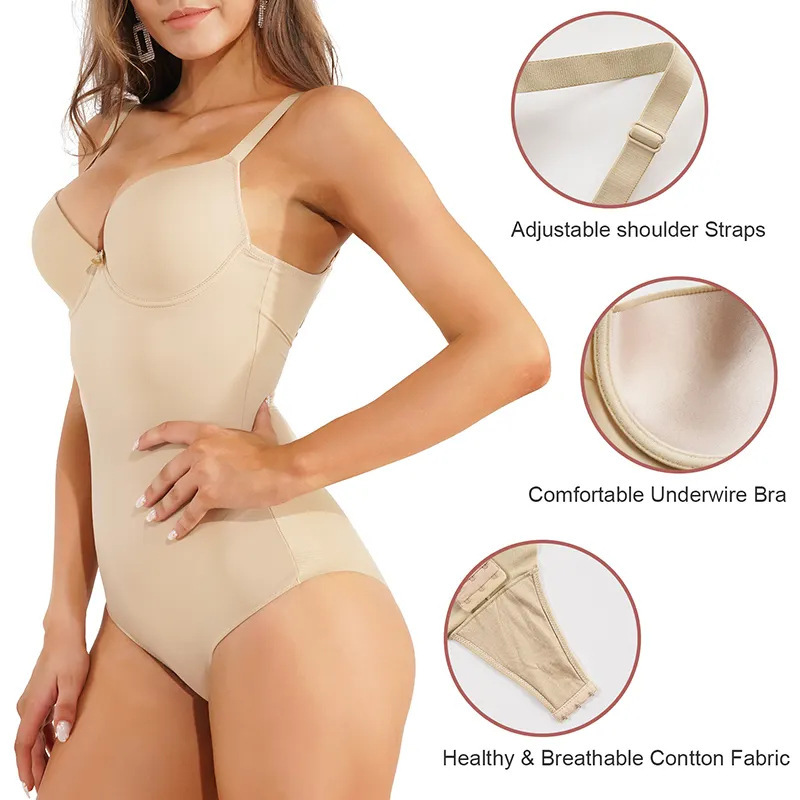 - Bodysuit with built-in underwire bra, V-neck bodysuit, comfortable full coverage molded cups with underwire, naturally push up to make the breasts look perfect and upright. This basic V-neck bra bodysuit prevents breast sagging and provides soft support. You can go braless, faja full body shaper provides enough support, non-compression bra design fits all cups, easy and comfortable, wear all day. Seamless shaper, smooth body, put on women's tummy control bodysuit, we will be more beautiful and charming.