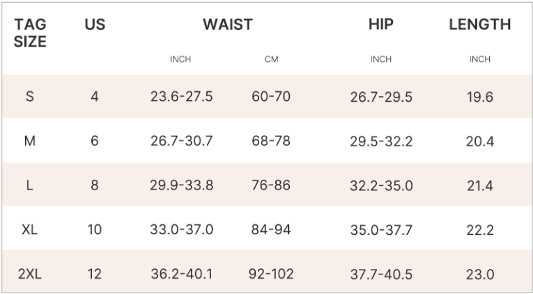 Our shapewear is designed to slim and smooth, so picking a size too small will cause bulges and discomfort.
